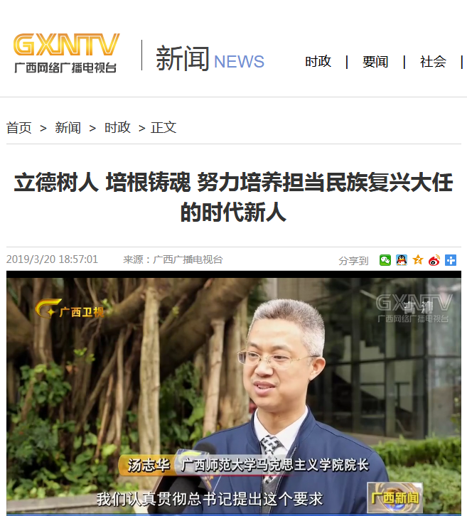 【同期声 广西师范大学马克思主义学院院长汤志华:思政课教师要发挥好积极性、主动性和创造性,我们认真贯彻总书记提出这个要求,积极推动思政课的改革,包括课堂开展的专题教学,课后实践研修还有就是网络的自主学习,进行多元的全过程的一个评价。】