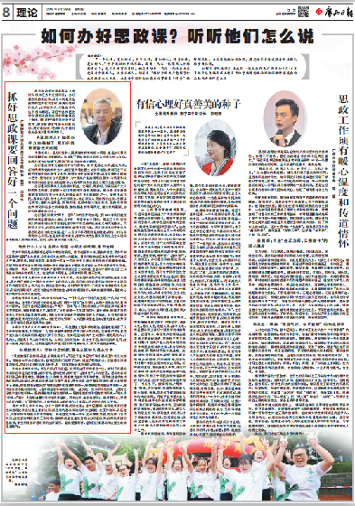 关键在思政课教师。学为人师、行为世范。教师的言行影响学生一生。新时代的思政课教师必须是政治要强、情怀要深、思维要新、视野要广、自律要严、人格要正。思政课教师要以自己的思想魅力、理论魅力、人格魅力、情感魅力去教育影响学生。要改变过去学生对思政课的认识误区,把思政课建设成为学生喜爱、终身受益、毕生难忘的课程,就必须坚持守正创新,按照总书记提出的“坚持政治性和学理性相统一、坚持价值性和知识性相统一、坚持建设性和批判性相统一、坚持理论性和实践性相统一、坚持统一性和多样性相统一、坚持主导性和主体性相统一、坚持灌输性和启发性相统一、坚持显性教育和隐性教育相统一”的八个“相统一”要求,大力推进思政课教学改革创新。只有这样,在学生学什么、能学到什么、学得怎么样方面才有了明确目标,才能形成教与学的合力,才能落实好立德树人根本任务。