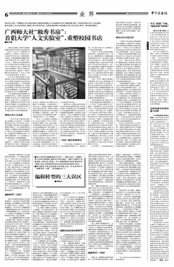 广西师大学社总部大楼的独秀书房·旗舰店,为城市社区、校园文化公共空间的功能探索、营造升级提供了一个样本,从中也可看出实体书店社区化发展、成为城市公共文化空间的趋势。可以说,书店是一个街区生活的灵魂和底蕴,是引领生活方式、丰富公众文化生活的共享空间,也是城市生活的一部分。
