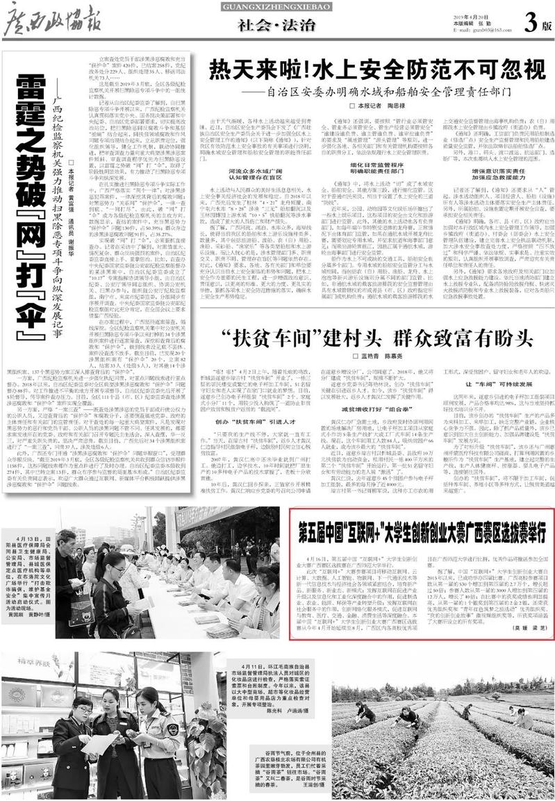 4月16日,第五届中国“互联网+”大学生创新创业大赛广西赛区选拔赛启动仪式在广西师范大学顺利举行。据统计,该启动仪式开幕式已获得85家来自全国各地新闻网站的报道。其中,有广西日报、中国新闻网、桂林日报、广西政协报为此进行了相关报道。