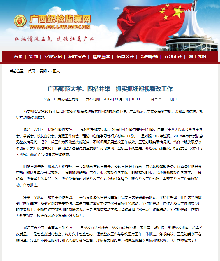 【广西纪检监察网】广西师范大学:四措并举 抓实抓细巡视整改工作