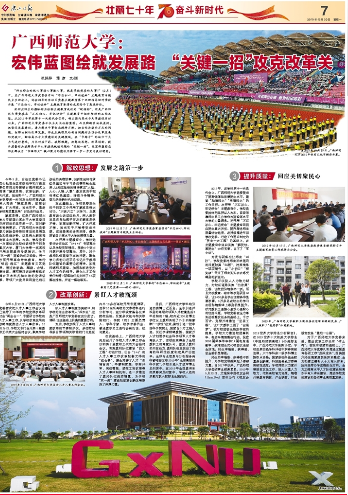 师生的幸福感、获得感不断提升,为学校发展凝聚起了磅礴力量。自2017年以来,广西师范大学各项事业硕果累累。2019年5月22日,艾瑞深中国校友会网(Guaa.Net)首次公布《校友会2019世界大学排名分析报告》,在2019世界十大权威大学排名(中国师范类高校)100强排名中,广西师范大学居第15位。学校在第四轮学科评估中取得突破进展;六个学科获一级学科博士授权点资格;国家级社科基金数量连创新高、科技服务地方取得突破性成效;学校持续大力度开展脱贫攻坚工作,投入大量人力物力,依托高校智力资源,精准开展教育扶贫、产业扶贫,打通脱贫攻坚“最后一公里”。