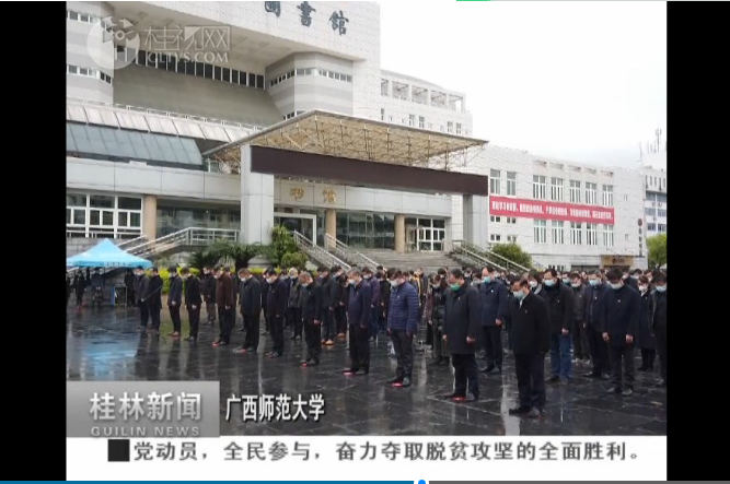 【桂林电视台】桂林新闻关注我校参加全国性哀悼活动 发表于 2020-04-07 4月4日,桂林电视台的桂林新闻栏目报道我市各地哀悼活动,报道关注了我校参加全国性哀悼活动,向在抗击新冠肺炎疫情斗争中牺牲烈士和逝世同胞的表达深切哀悼。4月4日,我校组织参加全国性哀悼活动链接:http://news.gltvs.com/202004/202004051120216c6d37e4327e4ecb.shtml