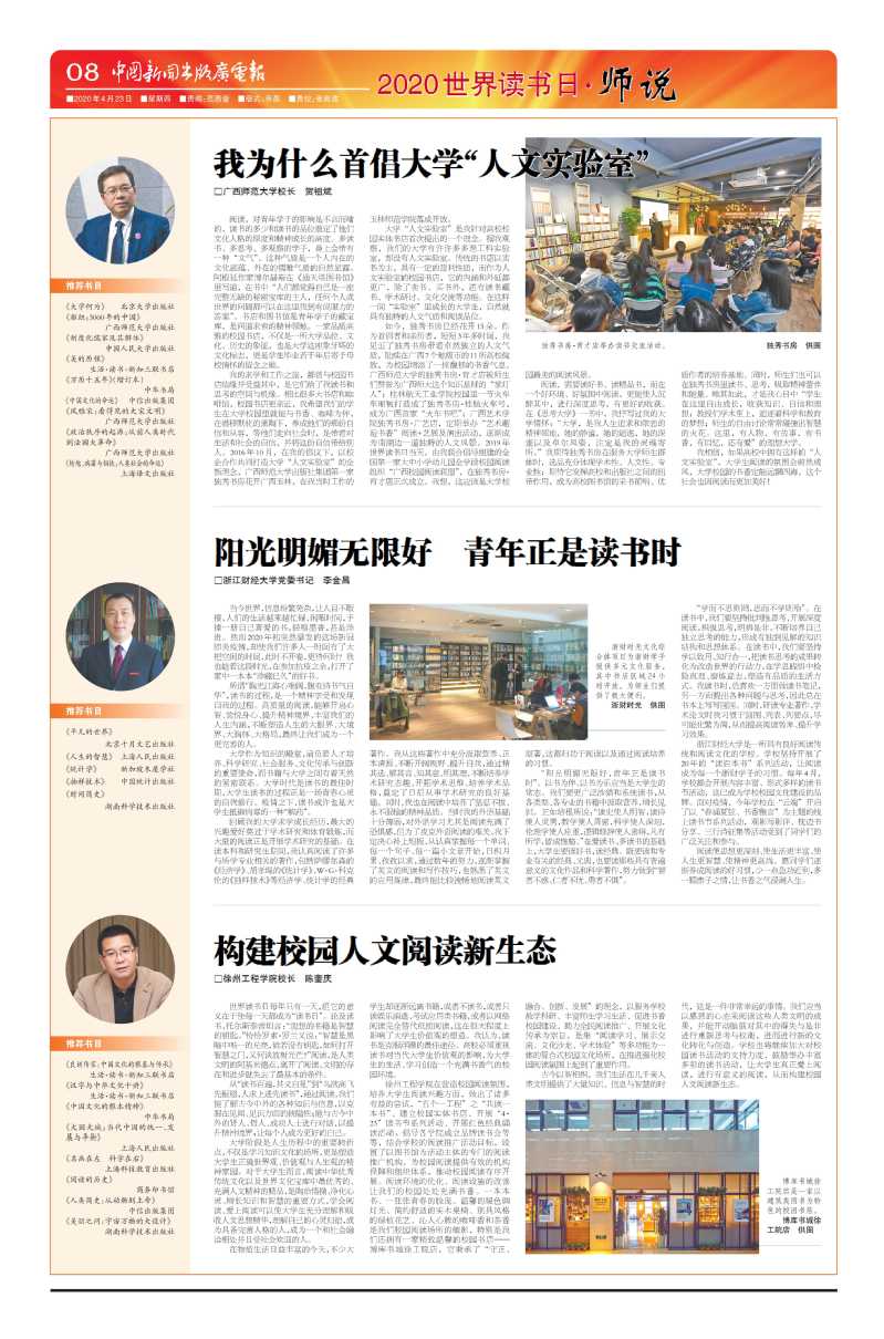 我相信,如果高校中拥有这样的“人文实验室”,大学生阅读的氛围会蔚然成风,大学校园的书香定能远飘四海,这个社会也因阅读而更加美好!