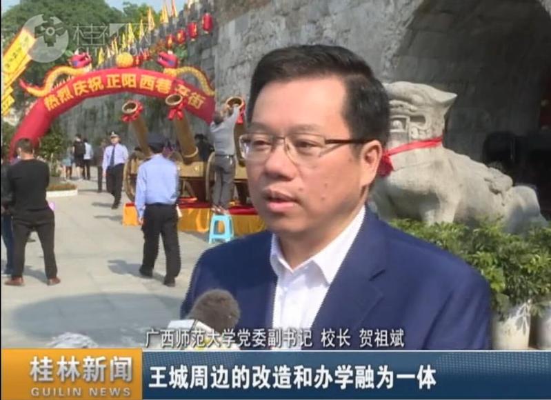4月29日上午,靖江王府片区历史文化旅游休闲街区项目竣工暨正阳西巷开街仪式。我校校长贺祖斌参加仪式并致辞。同时,桂林电视台对我校校长贺祖斌采访进行了采访。贺祖斌表示,东巷西巷都开了之后,对学校来讲是一个品质的提升,王城周边的改造和办学融为一体,进一步提升提升文化品位和品质。