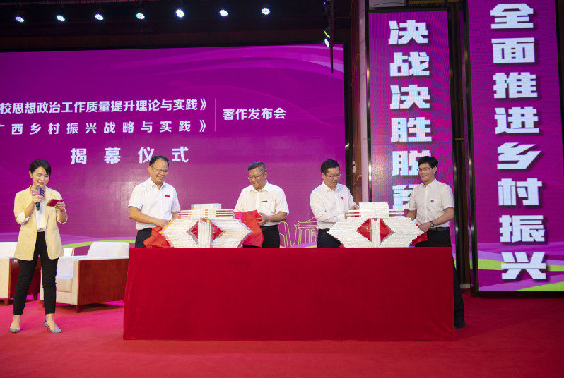 启动仪式后,《高校思想政治工作质量提升理论与实践》《广西乡村振兴战略与实践》发布会正式开始。邓军表示,《高校思想政治工作质量提升理论与实践》的出版,体现了广西师范大学高度的政治站位与思想自觉、政治自觉和行动自觉,全面深刻总结了广西师范大学在党的十八大以来实践探索的成果和丰富生动的实践案例,对于推动高校思想政治工作创新发展,都具有重要的理论价值和现实意义与参考价值。贺祖斌教授就《广西乡村振兴战略与实践》编撰意义与价值进行了分享,并分析了广西乡村振兴仍需迫切解决的问题。