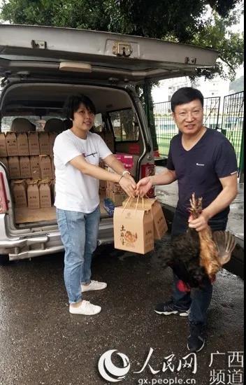 今年年初,因受疫情影响,存栏3000多羽土鸡的销售成了一大难题。陈欢欣苦苦思索,借力“三八”女神节推出土鸡、菌子尝鲜套餐活动。通过线上推广,广西师范大学教职工反响强烈,在学校扶贫微信群接力购买,现场扫码支付,人员零接触。土鸡的线上销售给久居家中的教师们带来了“宅急送”。陈欢欣也被大家玩笑地称为“货郎书记”。