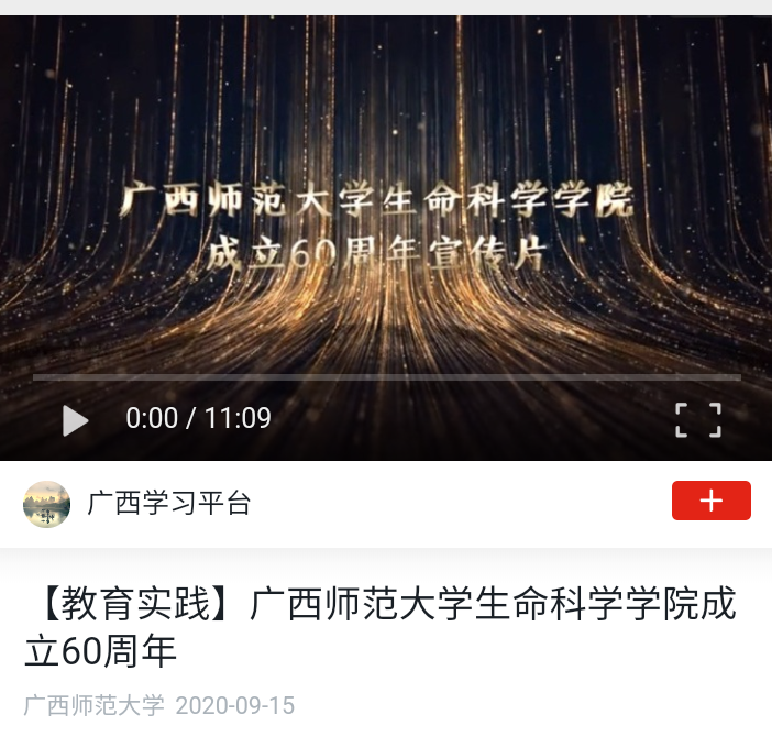 9月15日,“学习强国”广西学习平台【教育实践】栏目刊播我校生命科学学院成立60周年宣传片。