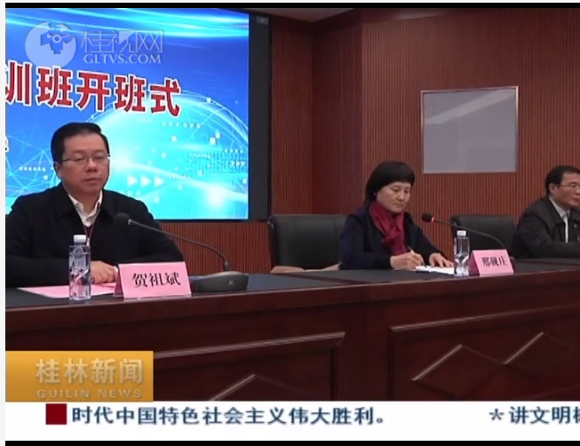 【桂林广播电视台 】我校承办的中国侨联文化交流干部培训班 发表于 2020-12-18 11月28日,中国侨联文化交流干部培训班在我校开班。我校校长贺祖斌致欢迎辞,中国侨联副主席齐全胜出席并作动员讲话。报道截图:报道链接:http://tv.gltvs.com/202011/20201129205240e1516ed0240e4f57_13.shtml