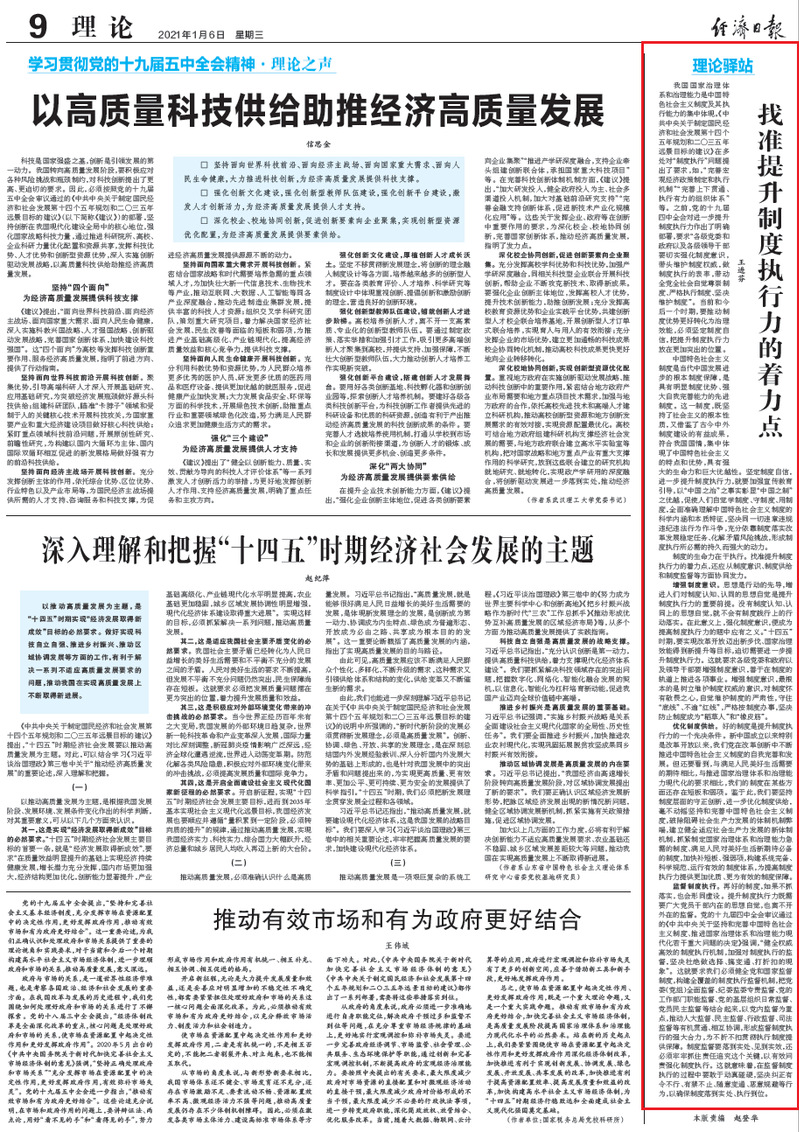2021年1月6日,经济日报第9版刊登我校王进芬教授理论文章《找准提升制度执行力的着力点》,文章指出,我国国家治理体系和治理能力是中国特色社会主义制度及其执行能力的集中体现。制度的生命力在于执行。当前,要推动制度优势更好转化为治理效能,必须把提升制度执行力放在更加突出的位置,着重从坚定制度自信、增强制度意识、优化制度供给、监督制度执行等方面协同发力。