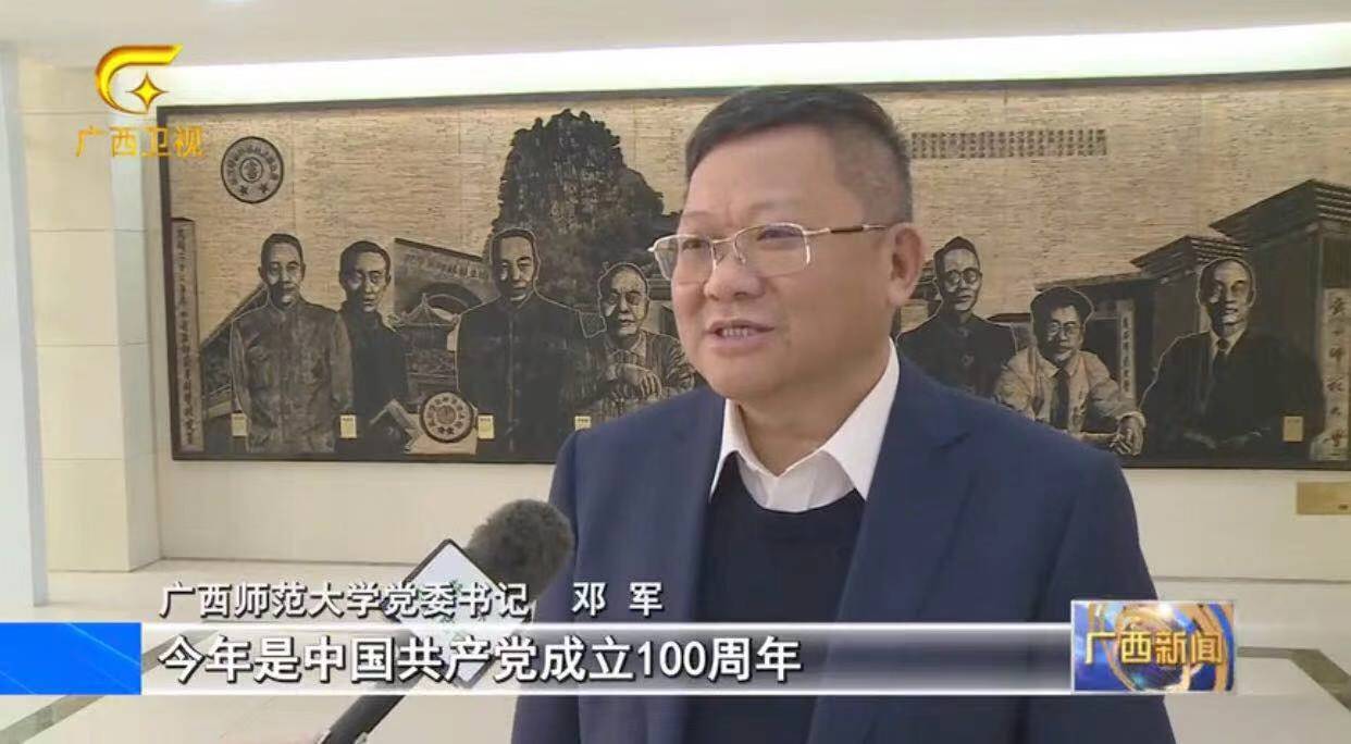 今年是中国共产党成立100周年,也是陈望道先生诞辰130周年。3月3日,广西电视台《广西新闻》栏目播出“奋斗百年路 启航新征程”特别节目,专题报道了我校党委书记邓军领衔讲述陈望道先生在广西师专的历史足迹,重温宣言精神,追寻信仰力量。