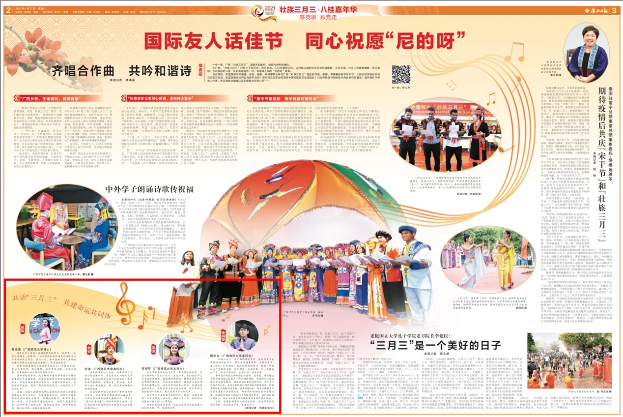 4月17日,广西日报报道我校留学生共话“三月三”,共建命运共同体。