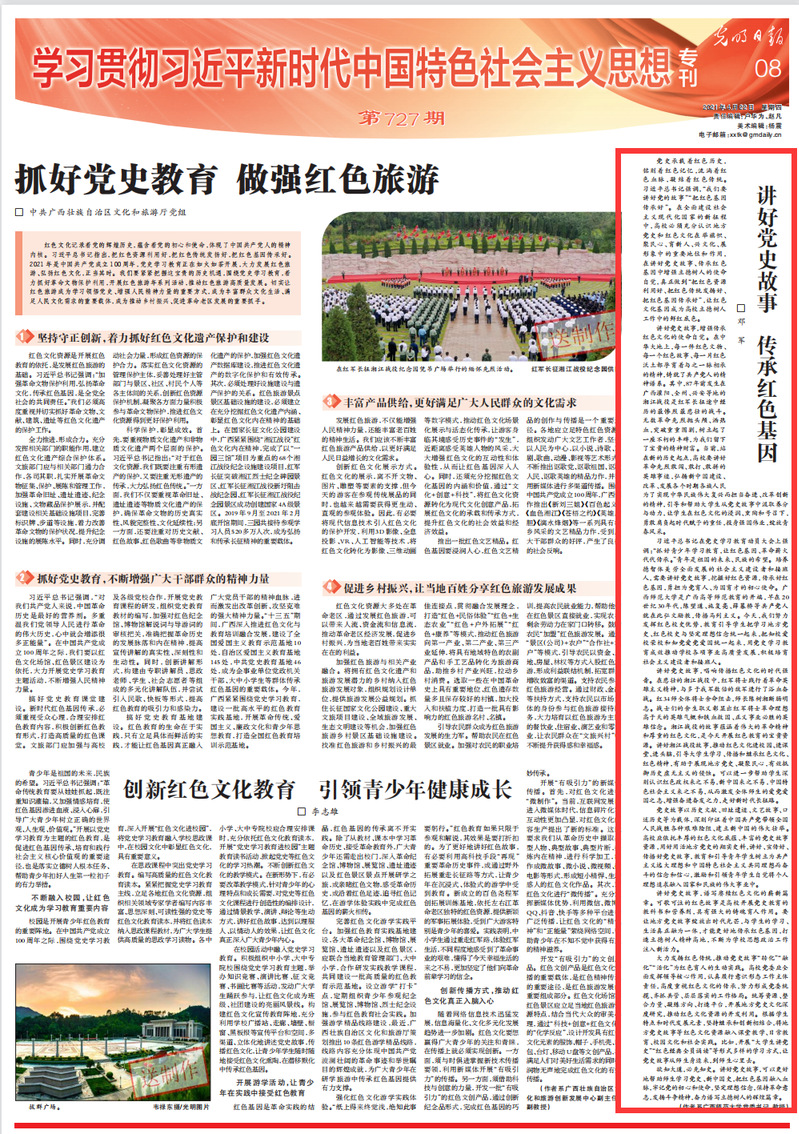 习近平总书记在党史学习教育动员大会上强调:“抓好青少年学习教育,让红色基因、革命薪火代代传承。”青年是祖国的未来、民族的希望。培养德智体美劳全面发展的社会主义建设者和接班人,需要讲好党史故事,挖掘好红色资源,传承好红色基因,勇担为党育人、为国育才的使命。广西师范大学是广西高等师范教育的开端,早在20世纪30年代,陈望道、施复亮、薛暮桥等共产党人就在此弘文励教,传播马列主义。今天,我们努力发挥红色校史优势,教育引导学生把学习地方党史、红色校史与坚定理想信念统一起来,把知校爱校荣校和知党爱党爱国统一起来,用党史学习教育成效推动学校各项事业高质量发展,积极培育社会主义建设者和接班人。
