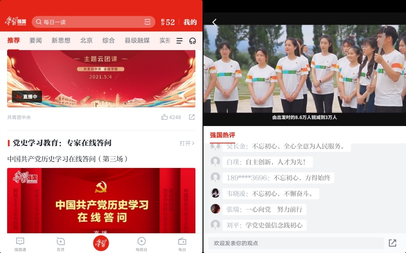 【共青团中央 全国学联】展播我校主题团日活动《血染湘江》 发表于 2021-05-04 5月4日,共青团中央、全国学联在“学党史 强信念 跟党走”主题云团课全团主题团日活动和优秀作品展播中播放我校主题团日活动《血染湘江》。日前,我青年师生代表跟随总书记的步伐,赴桂林市全州县红军长征湘江战役纪念馆及凤凰镇大坪渡口进行主题团日活动的学习以及微团课的录制,追寻红色足迹,从历史中汲取精神滋养,传颂永恒不变的红色精神。共青团中央视频号直播截图央视频平台直播截图“学习强国”学习平台直播截图微博平台直播截图Bilibili平台直播截图微团课《血染湘江》直播视频