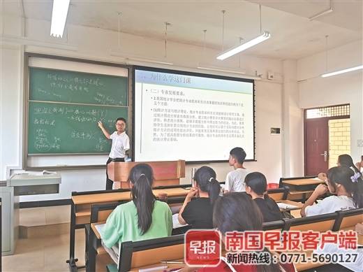 2021年9月9日下午,南国早报客户端记者看到,晏振早早就来到教室,给2020级统计学本科专业的学生们上第一节课,课堂上座率很高。