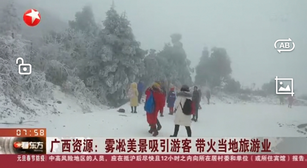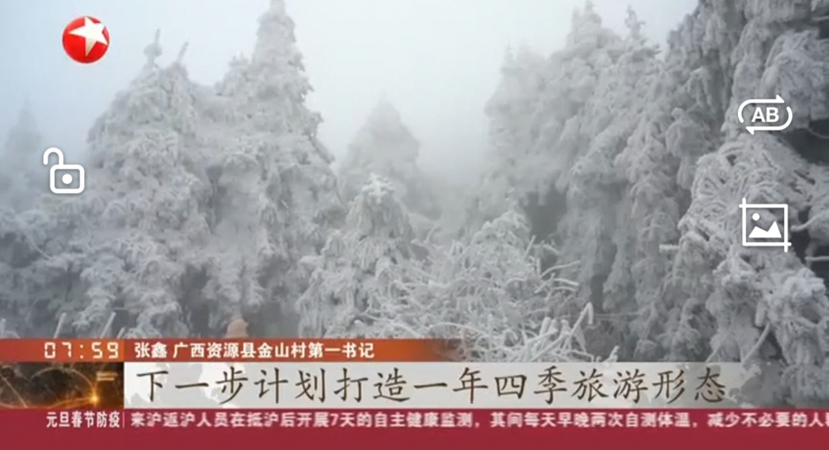 2022年新年伊始,广西广播电视台新闻频道、上海广播电视台东方卫视频道以《雾凇美景吸引游客 带火当地旅游业》为题,关注报道我校对口帮扶资源县金山村,在驻村工作队、村两委及后盾单位的共同努力下,不断开拓思路, 依托高海拔山区和气候条件,开发冬季赏雾凇雪景项目吸引了大量游客,增加了村民收入,脱贫群众增收致富越来越有保障。
