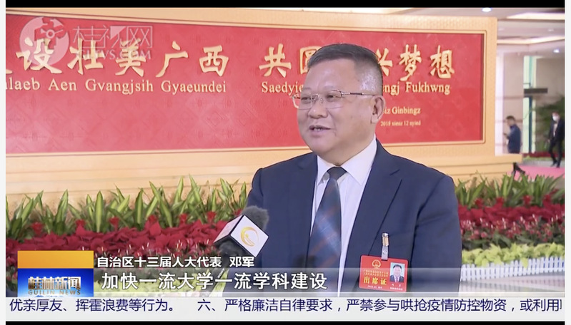 1月21日,桂林广播电视台以《自治区十三届人大五次会议闭幕 桂林代表以实际行动落实大会精神》为题,关注报道我校党委书记邓军在广西壮族自治区第十三届人民代表大会第五次会议召开期间接受媒体采访。