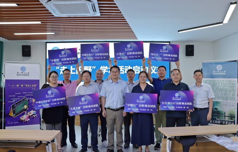 广西师范大学政治与公共管理学院坚持拓宽科研工作的广度和深度,积极引导教师成长为“动腿能调查,动手能写作,动口能表述,动眼能观察,动脑能思考”的复合型优秀人才。政治与公共管理学院加大投入,启动教师“走上田野”学术活动(第一季),推动教师以自愿结队的方式走出书房、深入田野,发现值得研究的真问题。经自主申报、学院评审,8个团队共40名教师成功入选。“走上田野”学术活动启动仪式上,学院行政主要负责人为获得资助的调研团队授旗。各团队纷纷表示,将扎根城市、农村的“实地”,感受社情民意,加强沟通切磋,在调研中有所学、有所悟、有所获、有所用,将论文著作写在祖国的大地上。