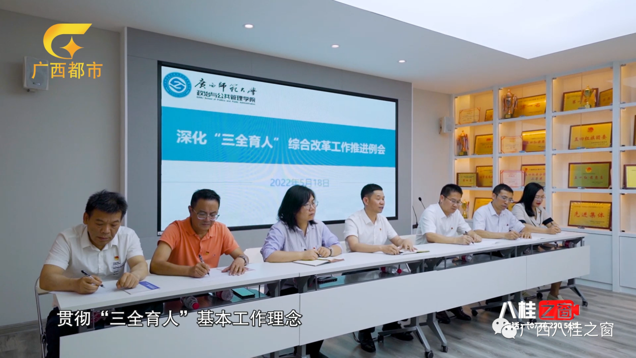 日前,广西电视台“八桂之窗”栏目播放专题片《聚焦党建引领 筑牢育人阵地——广西师范大学政治与公共管理学院》,展现我校政治与公共管理学院以党建为引领的“三全育人”综合改革工作及育人成效,突显学院的历史使命和未来方向。展望光明未来,广西师范大学政治与公共管理学院,奋力拼搏,奋勇前进,创造新的辉煌!