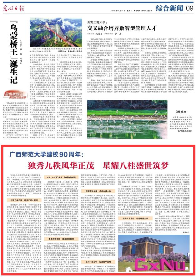 展开今天的《光明日报》,且看新时代广西师大站在学校建校90周年新的起点上,扎根中国大地办教育,推进国内一流大学建设的奋进新姿态!
