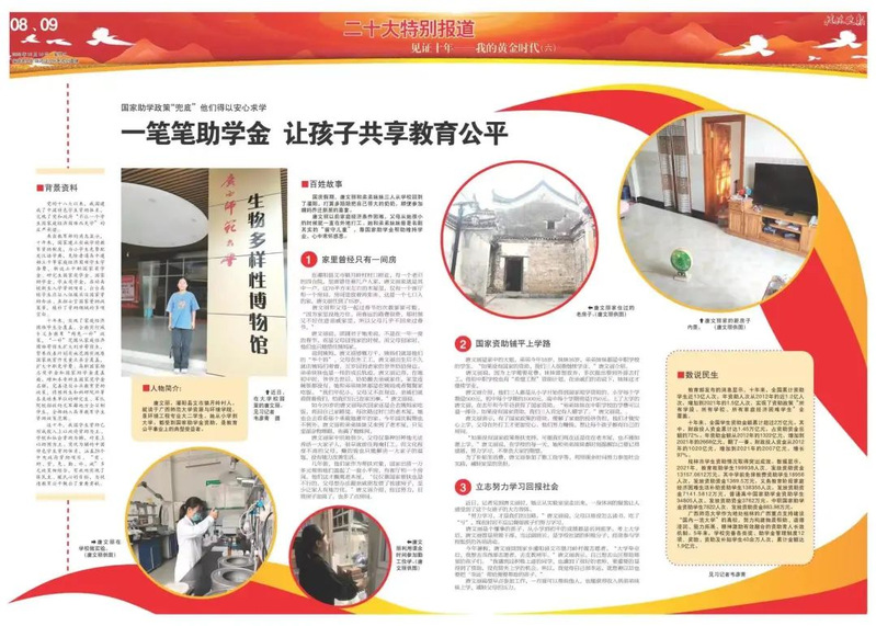 党的十八大以来,我国建成了中国特色学生资助体系,兑现了党和政府“不让一个学生因家庭经济困难而失学”的庄严承诺。