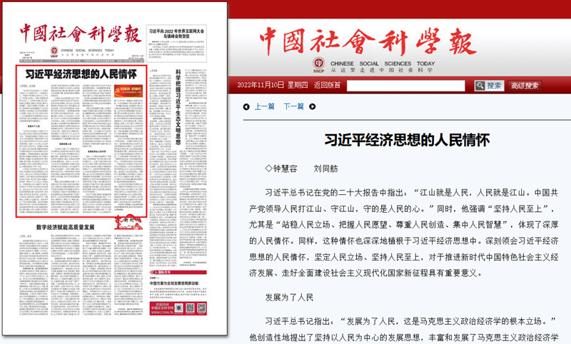 11月10日,我校马克思主义学院青年教师钟慧容副教授在《中国社会科学报》A01版上发表理论文章《习近平经济思想的人民情怀》,这是马院教师深入学习贯彻党的二十大精神的持续行动。