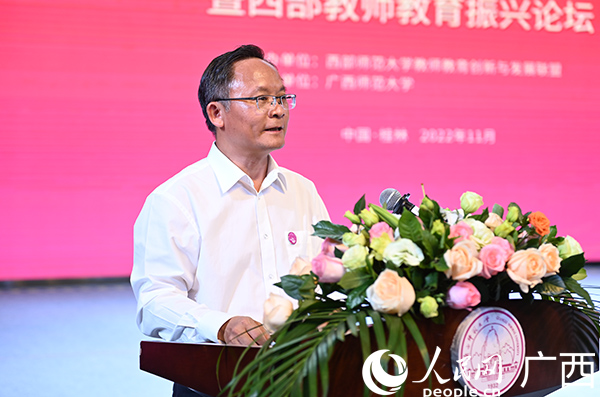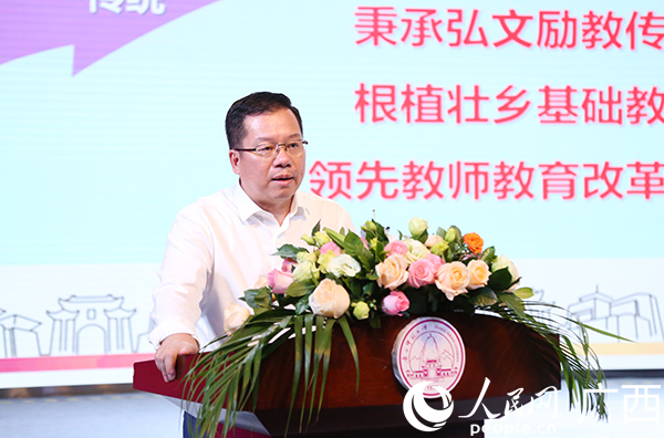广西师范大学校长贺祖斌致辞。人民网记者 严立政摄