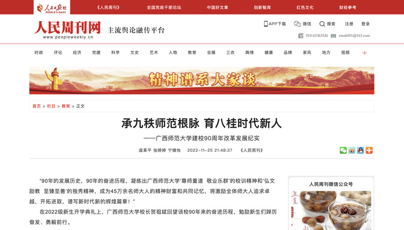11月26日,《人民周刊》杂志2022年第21期刊发我校建校90周年改革发展纪实的通讯报道。让我们一同重温90年来的奋进历程,坚守为党育人、为国育才的初心,在建设国内一流大学路上,再启新征程!