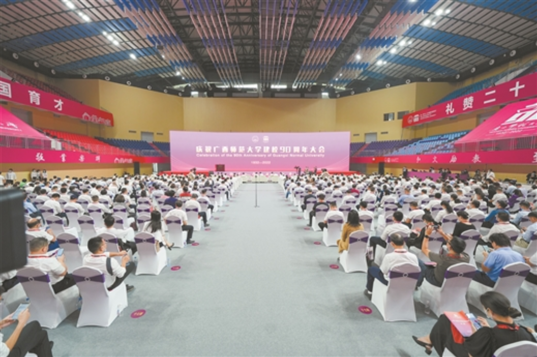 11月12日上午,庆祝广西师范大学建校90周年大会在广西师范大学雁山校区综合体育馆举行。