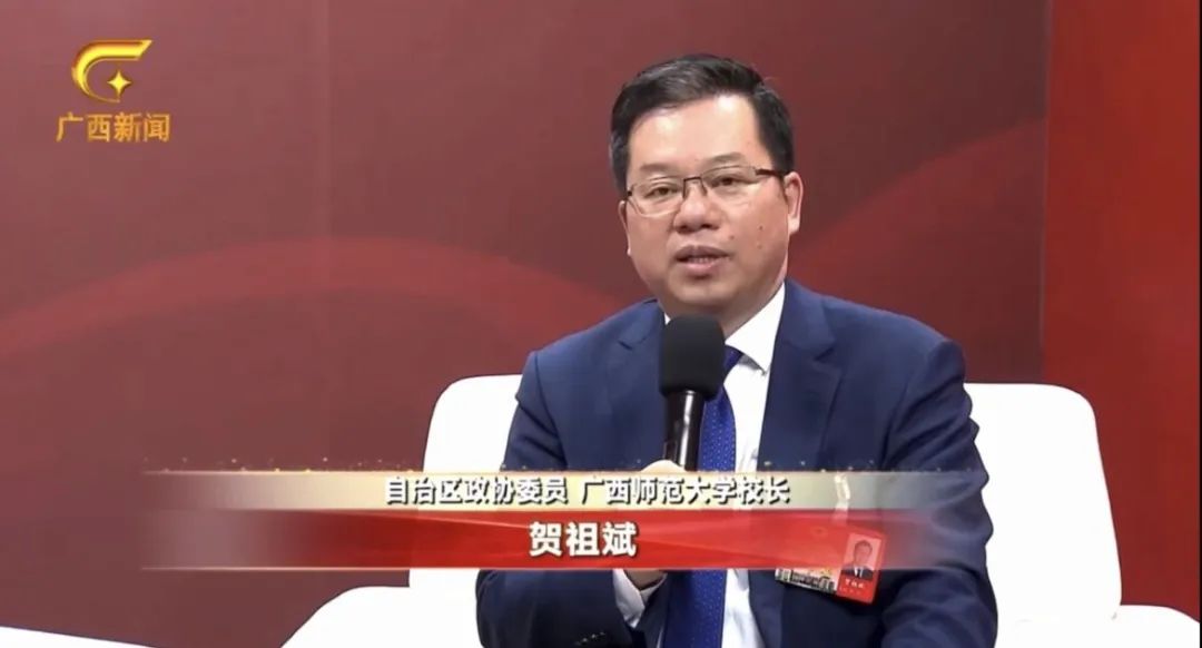 自治区“两会”期间,自治区政协委员、我校校长贺祖斌受邀做客《2023广西两会一一对话代表委员》栏目,为广西高等教育高质量发展建言献策,介绍了广西师范大学在加快推进高等教育高质量发展上的做法,表明了坚持为党育人、为国育才,努力培养造就德才兼备、全面发展、堪当重任的时代新人以及为打造桂林世界级旅游城市,助力新时代壮美广西建设贡献师大的力量的决心。