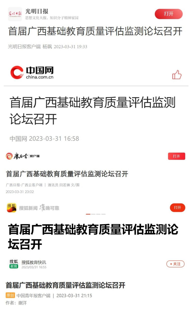 近日,光明日报、人民网、中国网、中国青年报、广西日报、桂林电视台、搜狐网等多家媒体对我校教育学部承办的“首届广西基础教育质量评估监测论坛”进行了关注报道。