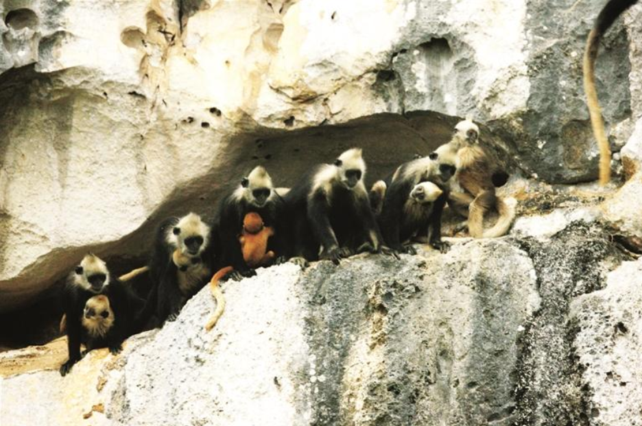 白头叶猴是灵长目猴科的一种,又名白叶猴、花叶猴、白头乌猿等,是全球最濒危的灵长类动物之一,我国特有种、国家一级保护野生动物。“它们喜住悬崖峭壁上,是因为这里环境安全、舒适、干净。”讲座上,周岐海和大家分享研究保护白头叶猴的故事。