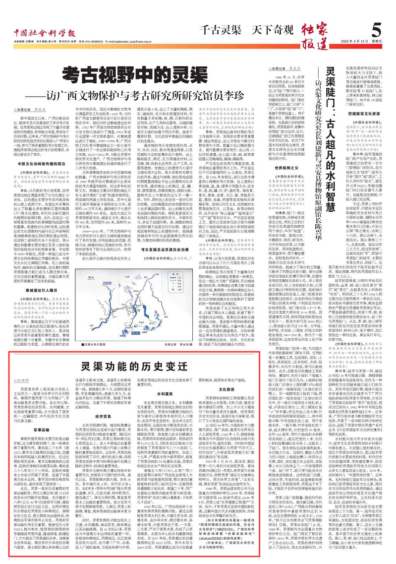 4月14日,中国社会科学报第5版刊发历史文化与旅游学院江田祥教授《灵渠功能的历史变迁》一文。文章以历史时间为脉络,详细介绍了灵渠的军事运输、经济贸易、水利灌溉、文化旅游等重要功能,重点突出了灵渠促进国家统一、边疆稳定、中外经济文化交流与民族融合的重要意义。
