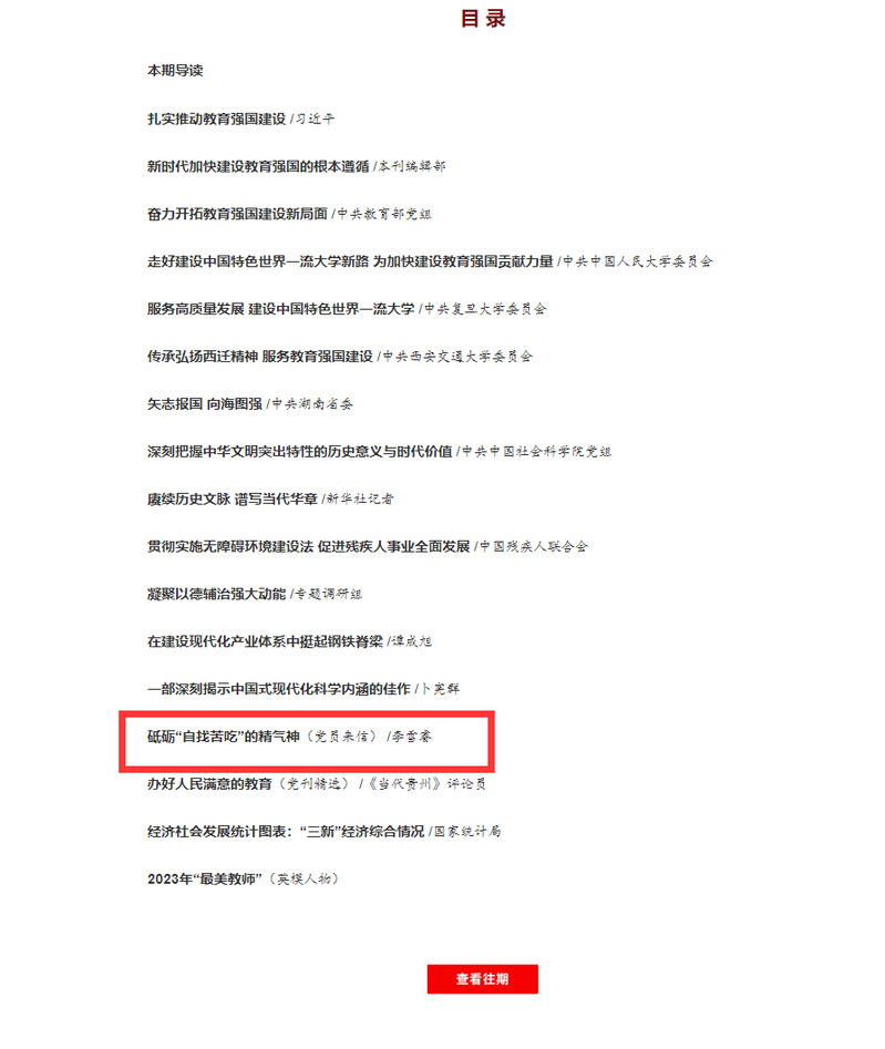 9月16日,《求是》杂志2023年第18期刊发我校马克思主义学院硕士研究生李雪睿给编辑同志撰写的党员来信《砥砺“自找苦吃”的精气神》。