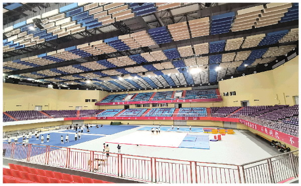 据相关负责人介绍,综合体育馆建筑面积12000多平方米,拥有5000多个固定看台座位。综合体育馆原有条件优良,设施也较为先进。为了给到现场观赛的观众呈现更丰富的观赛效果,给来自各地的运动员们带来更舒适的参赛体验,体育馆对声学设备、吸音墙、新风系统等进行了升级改造。随着比赛临近,升级改造已全部完成,预计将于10月26日开始对场馆进行比赛布置,包括健美操、啦啦操两块场地、展板等,所有工作将于11月30日前结束。