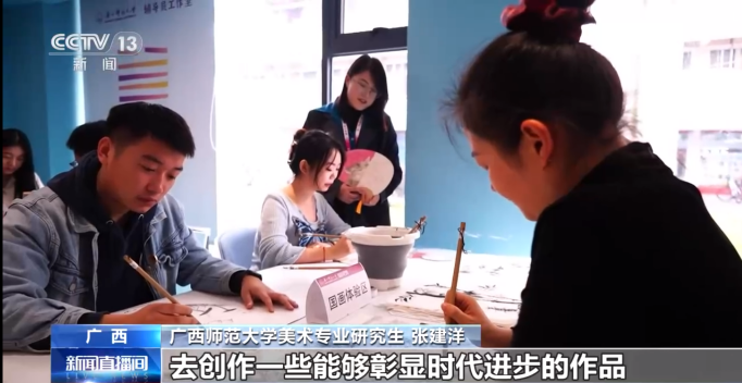 美术专业研究生张建洋表示:“想用自己的专业教更多热爱国画的同学,去创作一些能够彰显时代进步的作品。”