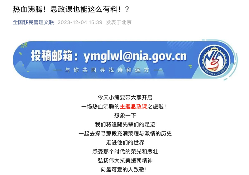 全国移民管理文联报道:《热血沸腾!思政课也能这么有料!?》