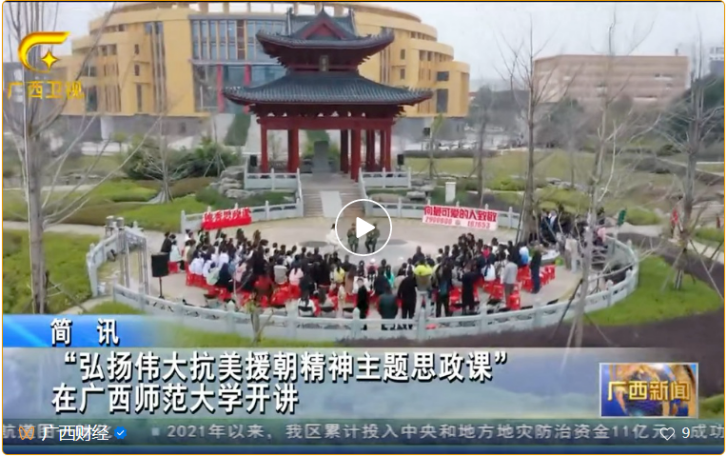 广西卫视、广西新闻频道报道:《弘扬伟大抗美援朝精神“沉浸式”主题思政课在广西师大开课》