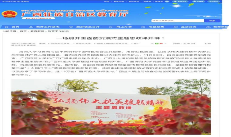 广西壮族自治区教育厅发布:《一场别开生面的沉浸式主题思政课开讲!》