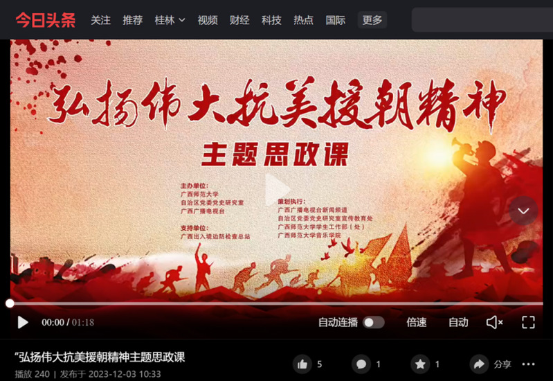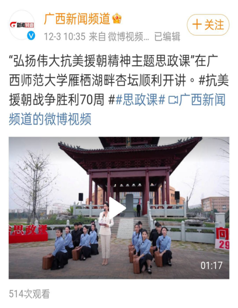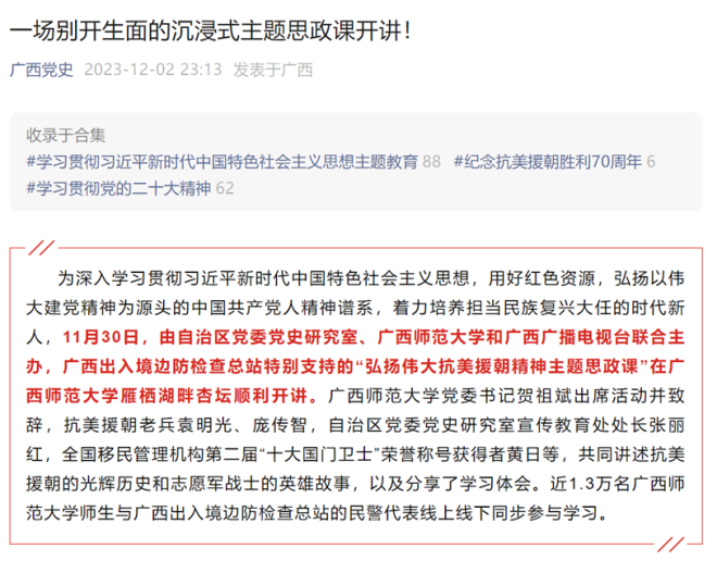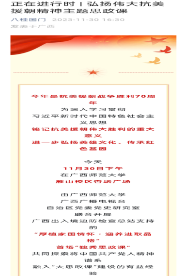 八桂国门:《正在进行时 | 弘扬伟大抗美援朝精神主题思政课》、《热血沸腾!思政课也能这么有料!?》