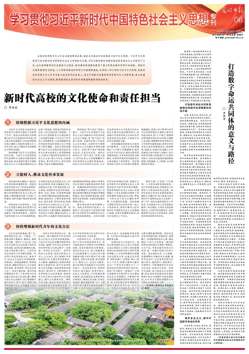 12月27日,《光明日报》06版刊发我校党委书记贺祖斌理论文章《新时代高校的文化使命和责任担当》。