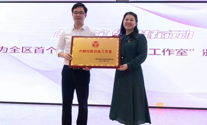 自治区妇联副主席朱红玉为我校创新创业学院授予全区首个“巾帼创新创业工作室”