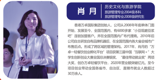 榜样的力量是无穷的。学校高度重视创新创业女大学生榜样的选树,对广大女大学生创新创业起到了很好的示范引领、辐射带头作用。聘请优秀女性企业家对女大学生创新创业提供全链条的辅导;实施“金种子计划”“蒲公英计划”“梧桐计划”,对女大学生创新创业做到早发现、早跟踪、早培养,培养了一批朋辈创业榜样。该校文旅学院校友、万卓国际集团创始人肖月说:“学校的创业课程为我后来的创业埋下了种子,大学毕业后在香港注册了万卓国际集团,现在已成为中国轻餐饮领军企业,在全国34个省市自治区带动30多万人/次就业创业。”