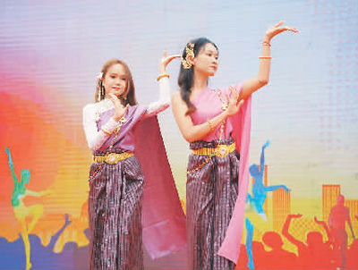 图为老挝学生表演民族舞蹈。庞革平摄 |