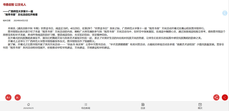 4.桂林日报:书香启智 以文化人——广西师范大学第十一届“独秀书香”文化活动拉开帷幕