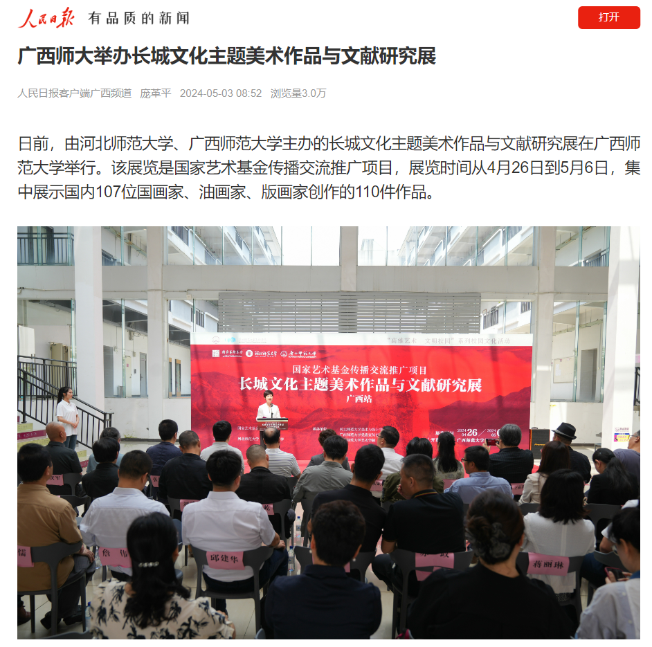 《人民日报》:广西师大举办长城文化主题美术作品与文献研究展