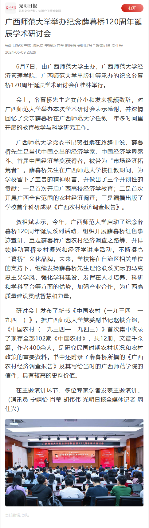 《光明日报》客户端 广西师范大学举办纪念薛暮桥120周年诞辰学术研讨会