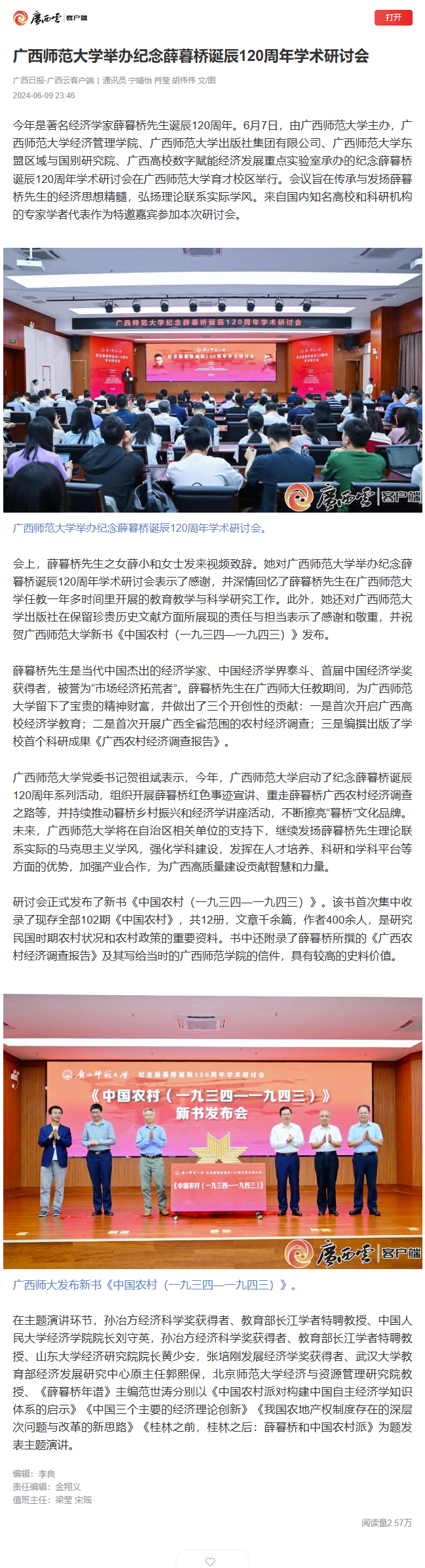《广西日报-广西云》客户端 广西师范大学举办纪念薛暮桥诞辰120周年学术研讨会