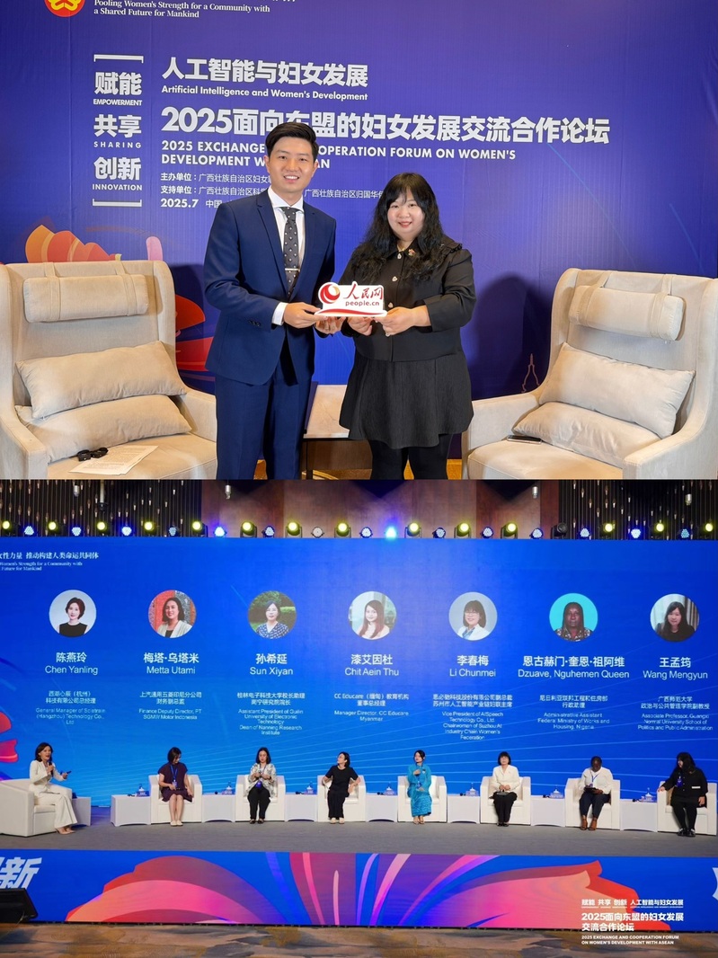 为深入贯彻习近平总书记关于妇女工作的重要论述,充分发挥中国—东盟妇女友好交流合作的独特优势,近日,2025面向东盟的妇女发展交流合作论坛在广西南宁开幕,我校政治与公共管理学院王孟筠老师受邀参加论坛圆桌对话,活动在广西壮族自治区外事办公室网站、人民网、广西壮族自治区妇女联合会官方微信公众号《广西女性》等宣传平台上报道。