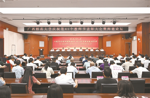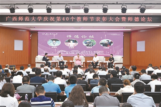 2025年9月9日,广西师范大学庆祝第41个教师节表彰大会暨师德论坛现场。宁婧怡/摄